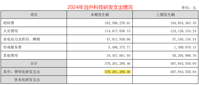 事实上,当升科技也是这么做的。前面我们讲了2024年公司净利率同比下滑6个百分点,一部分原因是公司砸了近4亿元的研发,研发费用率同比提升了2.1个百分点。