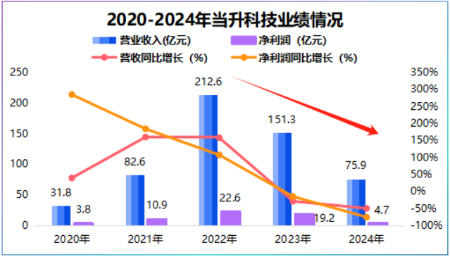 2024年财报显示,当升科技实现营收75.93亿元,同比下滑49.8%,实现净利润4.73亿元,同比骤降75.48%。