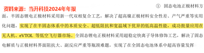 除了针对新能源汽车外,公司半固态电池正极材料已经批量用于无人机、eVTOL等低空飞行器。